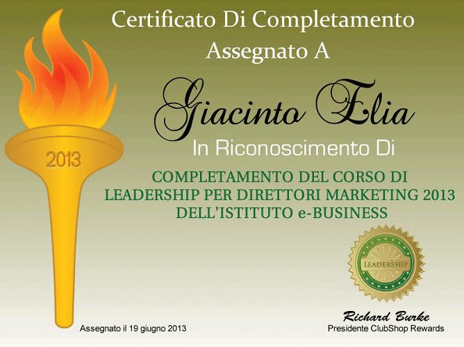 Ho conseguito la certificazione Leadership Marketing Director, che attesta competenze nella gestione strategica e nella direzione marketing.